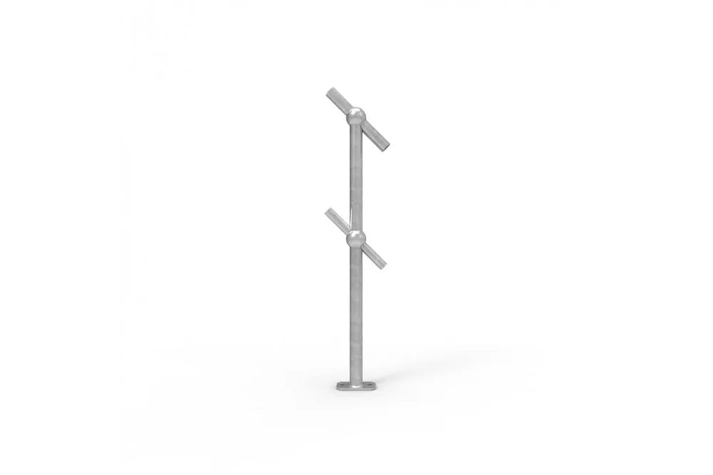 The Ball Fence Through Post - Side Mount, featuring a resilient galvanised finish, is a fundamental and versatile component within the Ball-Fence modular handrail system. This specialised side-mounted through post ensures secure and adaptable transitions within your Ball-Fence installation, showcasing the system's adaptability and commitment to safety and design versatility.