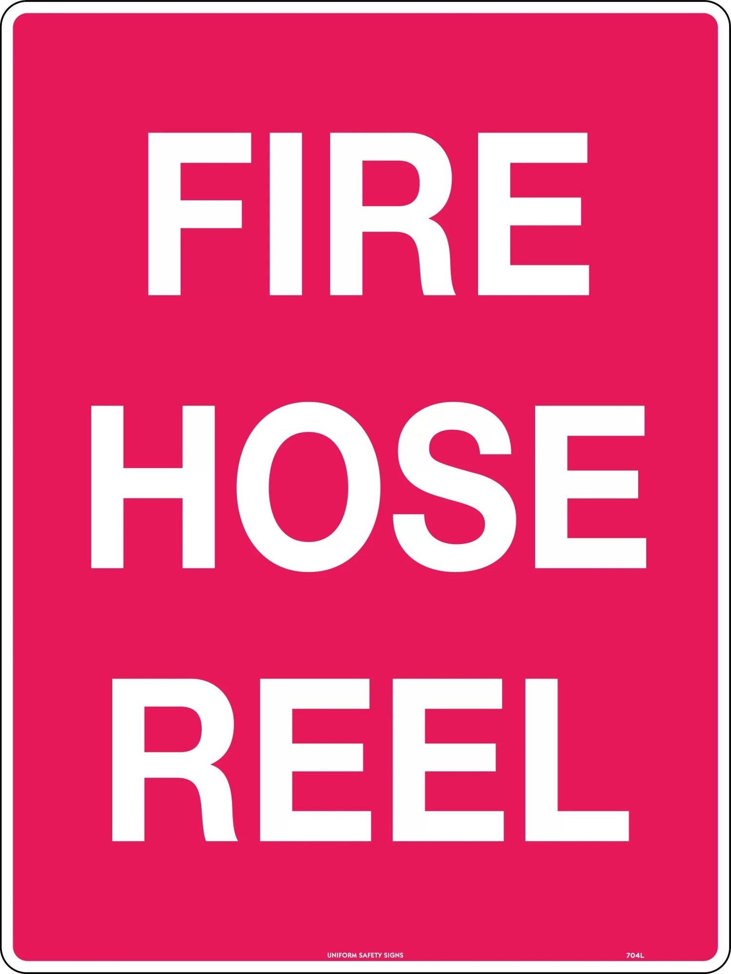 The Fire Sign - Fire Hose Reel offers a practical and durable solution for clearly marking fire hose reel locations. Made from durable materials, Poly or Metal, this red and white sign displays the text "Fire Hose Reel" in bold, easy-to-read letters. This sign ensures fire safety measures are clearly identified in any workplace or public area.