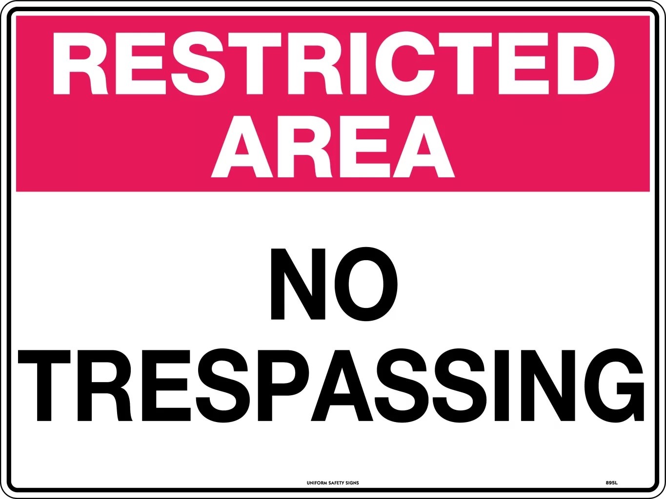 - The strong use of colour, combined with large, bold text, makes this sign highly effective at conveying the seriousness of the "No Trespassing" restriction, ensuring unauthorised personnel are deterred from entering restricted areas.