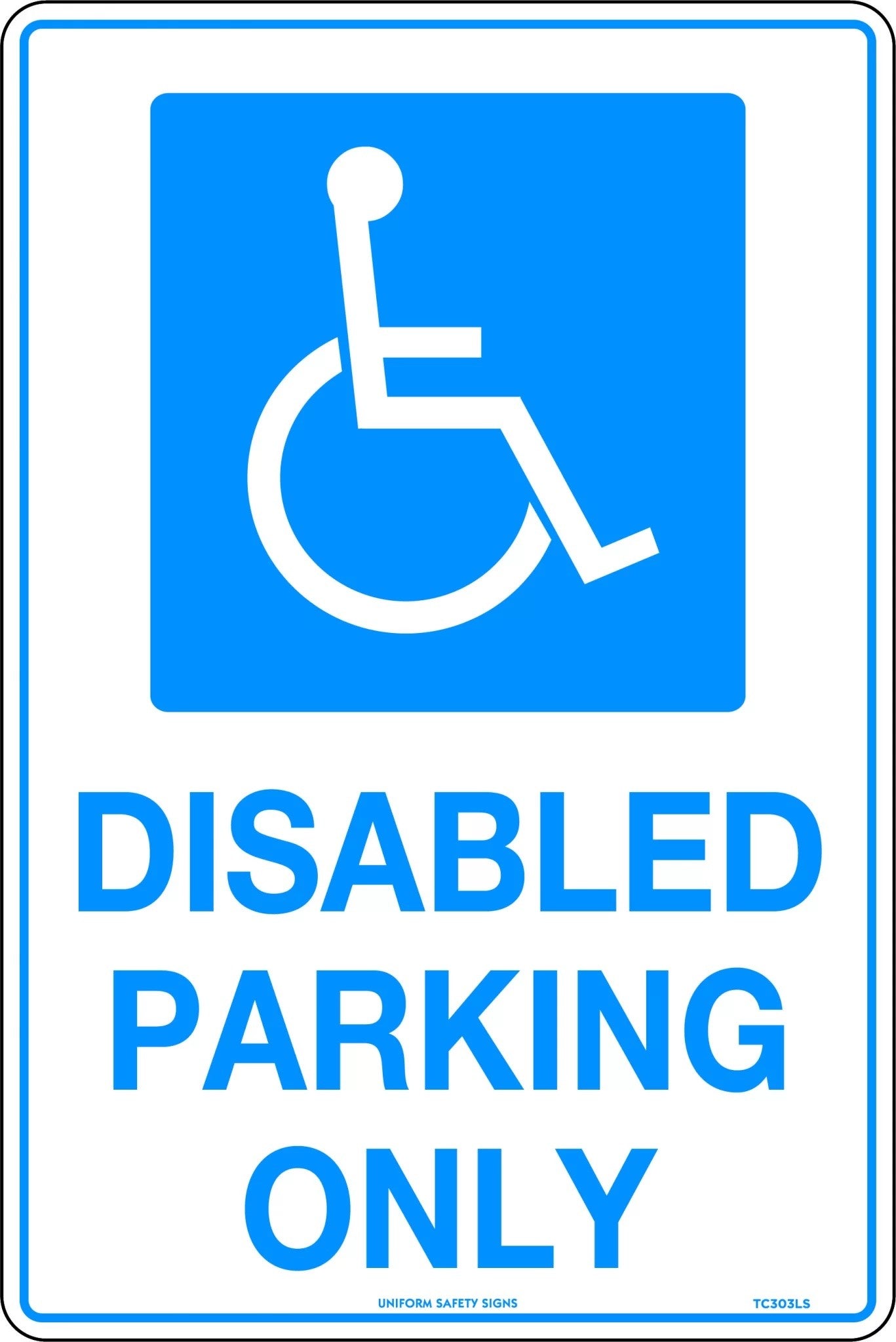 The Parking Sign - Disabled Parking Only is a highly visible and durable sign, designed to clearly mark parking spaces reserved for individuals with disabilities. Made from robust materials, Poly or Metal, this sign ensures long-lasting performance in outdoor conditions, helping to maintain compliance with accessibility regulations. The sign features bold blue lettering at the bottom that reads “Disabled Parking Only,” with a recognisable wheelchair pictogram displayed in a blue square at the top.The sign is the perfect size for parking lots, garages, or any area where disabled parking needs to be clearly designated.