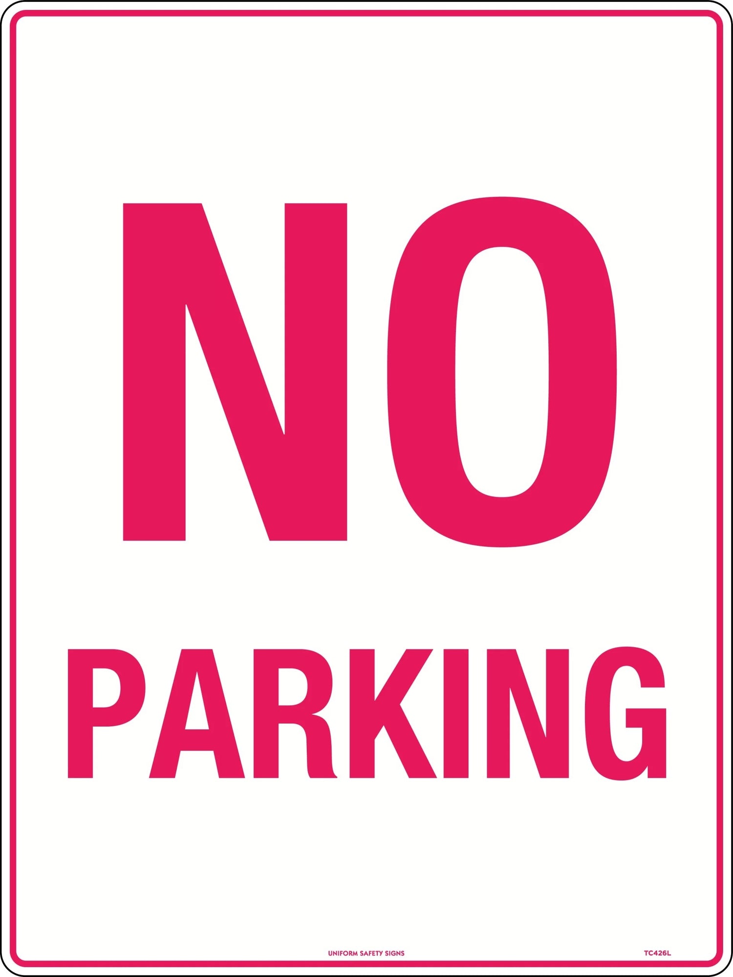- The sign’s bold red text and border enhance visibility, making it easy for motorists to identify the "No Parking"